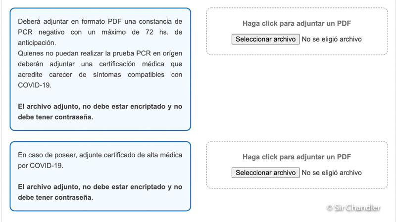 Y abajo dice lo de adjuntar el test PCR o certificado médico del alta por enfermedad. No hay restricciones en el form sobre quienes pueden meter el certificado médico, por lo que entiendo que ahí el filtro lo hace la aerolínea en el aeropuerto