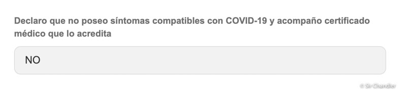 Esto genera confusión por como está puesto y generó varias consultas. Estimo que ahí es donde uno mete en el caso de República Dominicana u otros lugares aptos al certificado y cambia lo de abajo. Pero si uds vienen con PCR, tienen que poner NO