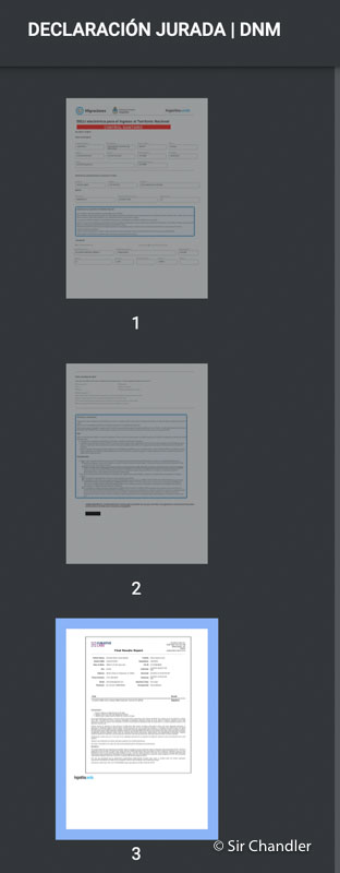Como curiosidad, y la verdad esto creo que quedó bien porque uno puede guardar todo en el celular, la DDJJ tiene tres hojas en total, 2 de lo DDJJ y la tercera es directo el pdf con el test covid