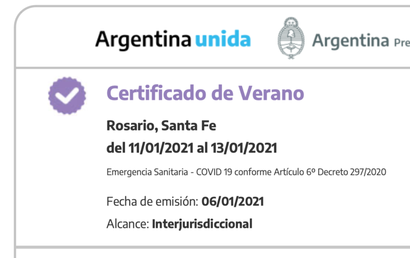 Viaje en febrero a Salta y a Jujuy. Por las dudas (y por obse) hice un certificado por cada lugar en el que me hospedaba: Tilcara, Purmamarca, Iruya, Salta capital… Al reverendo cuete, nunca me pidieron nada, ni en los hoteles, ni en el aeropuerto.
