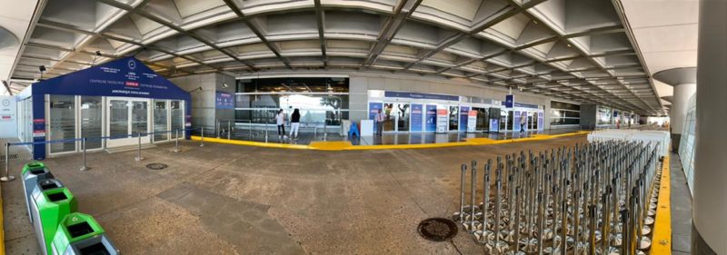 Y esta es una foto que me pasaron de Aeroparque, que es una carpa similar y que está en el espacio donde antes pasaban los autos y ahora se dejó para armar filas fuera del edificio