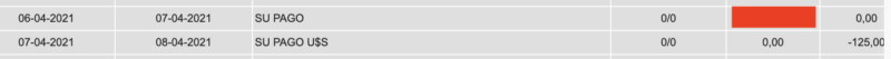 Acá pongo el ejemplo de un pago reciente mio, el 7 de abril pagué USD 125