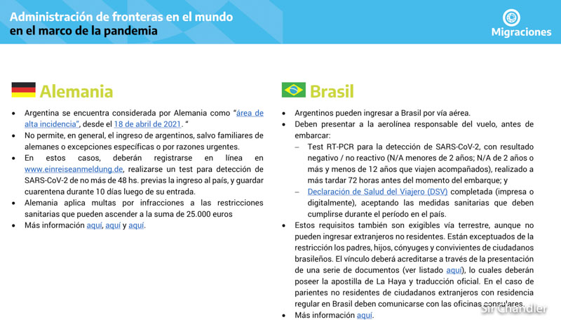 Este es el del 23 de abril mencionando 14 países de mayor tráfico con la Argentina con este resumen, donde tienen los links activos