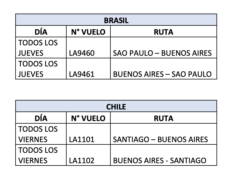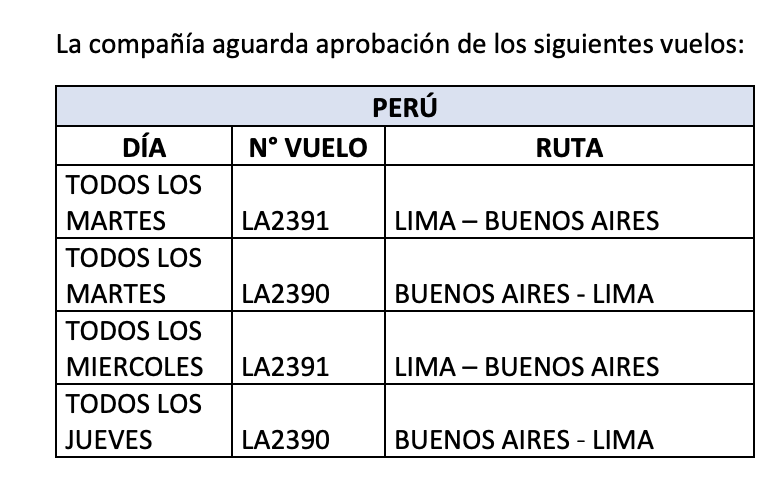 Ambos números de vuelo no son los que figuran en el comunicado de autorizados de Latam inclusive la ida a Lima, que en este caso sería el miércoles también.