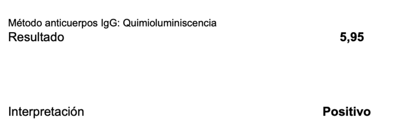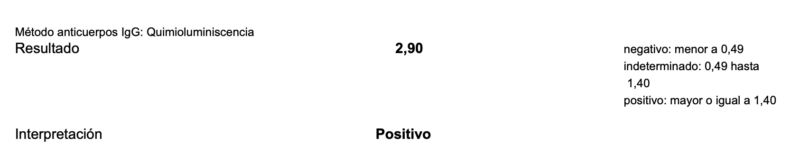 Volviendo al tema del COVD superado, esta semana me hice un estudio de anticuerpos. Es la segunda vez que lo hago porque en mayo 2020 ya me había sacado la duda de si en MARZO 2020, cuando había arrancado todo… me había infectado. En ese momento el resultado dio negativo.