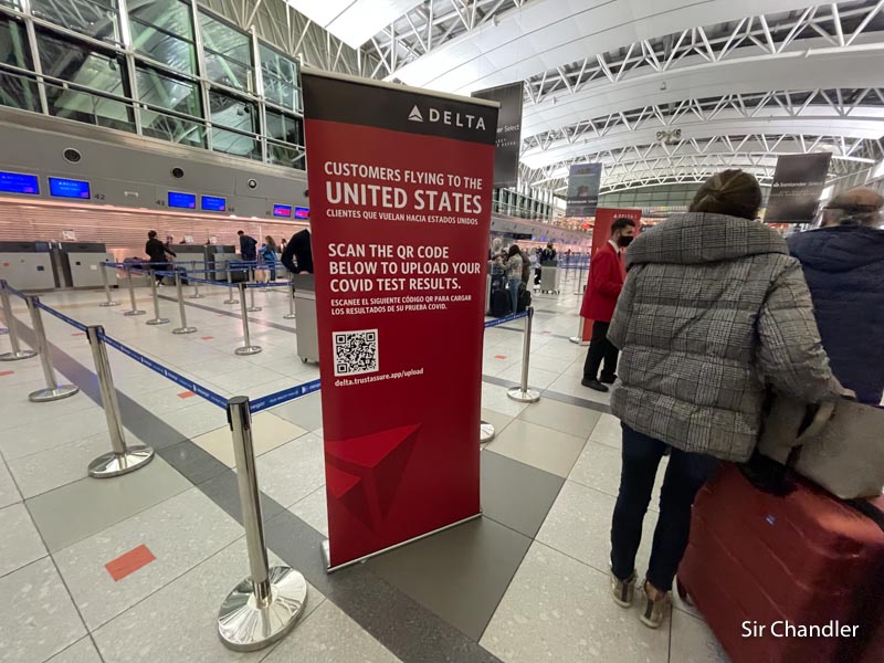 En la fila de Delta antes de entrar en la terminal A había que leer un QR para completar un formulario de USA. Pero también había que adjuntar con otro formulario que estaba adentro el TEST PCR… obviamente no era mi caso y no hay plan B, no se puede llenar y directamente se pasa.