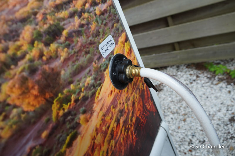 Todos tienen conexión con agua para no usar el tanque que tiene en si la caravana, con muy buena presión. Esa manguera se guarda en la caravana