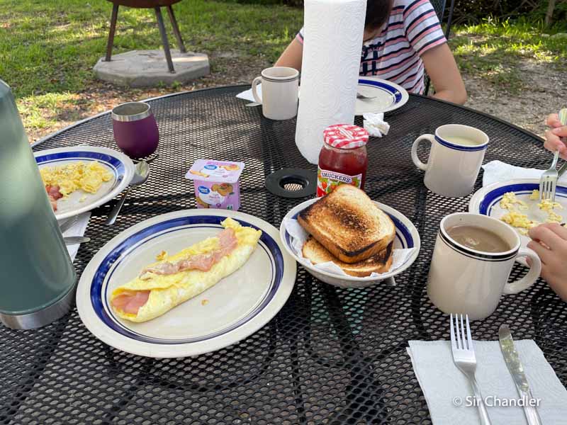 Hay campings con esas clásicas parrillas de USA, pero te suelen cobrar el alquiler. Todas tienen mesas, pero si no uno saca una mesa especial que está en el depósito del equipaje. Tiene una luz externa