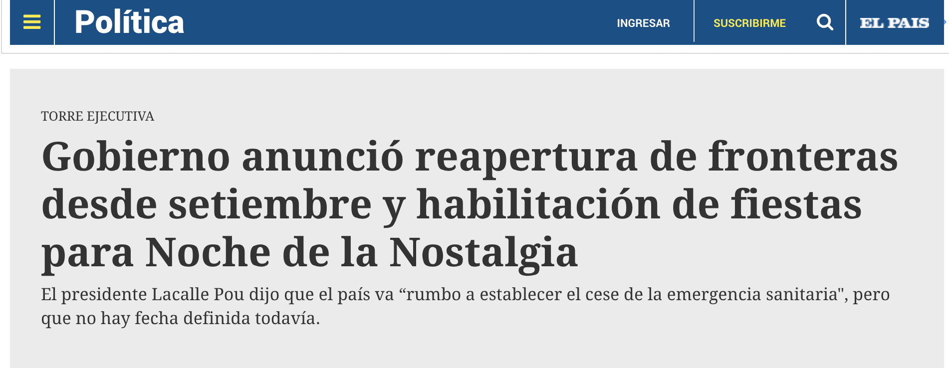 Ayer en conferencia de prensa el presidente de Uruguay informó que comienzan a abrir las fronteras desde el 1º de sePtiembre,