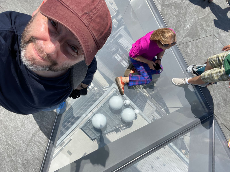 Pero en una parte tienen un gran piso de vidrio para poder mirar hacia abajo obviamente o no… pero para sacarse una foto a con 100 pisos de altura