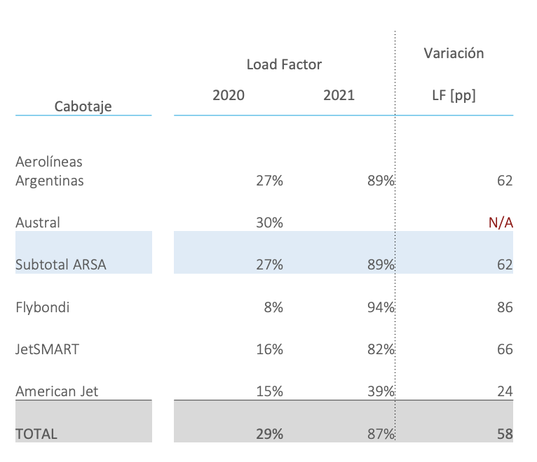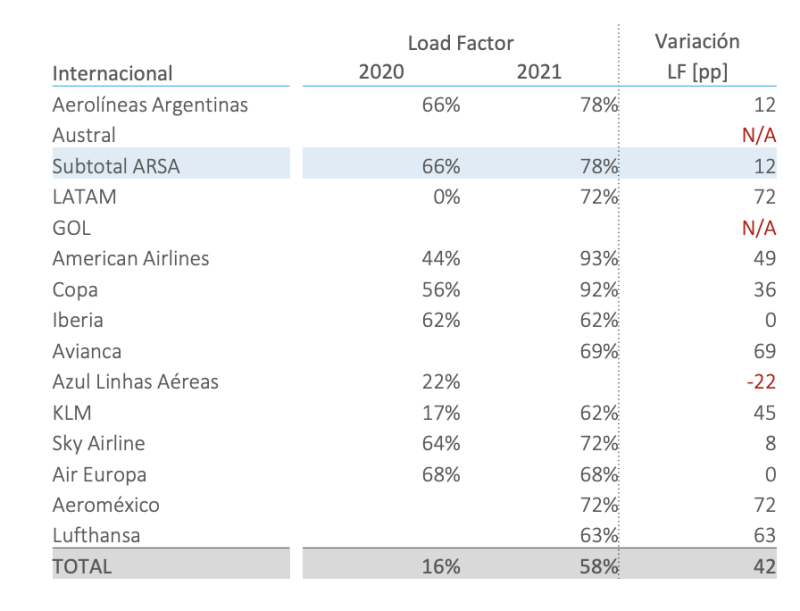 Y en este otro cuadro se ve que Iberia llegó al 62% de ocupación, porque claro, se iban llenos pero volvían a la mitad. Cosa que a American con el 93% no le pasaba.