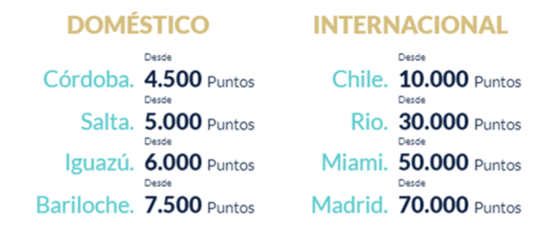 Esta esta tabla de canje de pasajes, que termina siendo parecido a lo de Quiero! con el Galicia