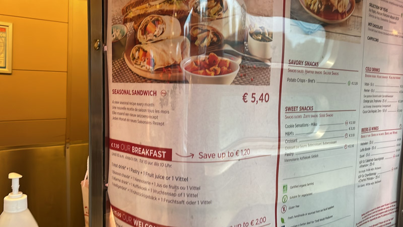 Tomé el mismo tren a fines de sept 2019, saliendo a las 8:25 y llegando a las 11:44 hs, en primera clase y lo aboné 44 euros! con desayuno (abundante) incluido, una genialidad y un servicio magnifico sin ir al coche bar. Ahorrándome de esta manera el desayuno en Paris y/o la terminal.
