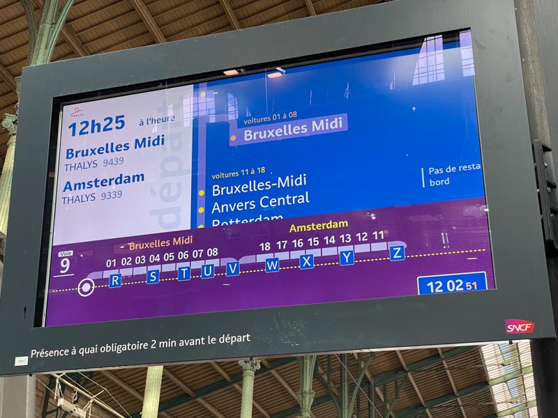 En las pantallas se indicaba la composición de todo el tren y se ve que la mitad era para Bruselas y la otra para Amsterdam. Por lo que fuimos «pegados» hasta la capital de Bélgica y ahí se separaron para seguir a la de Países bajos
