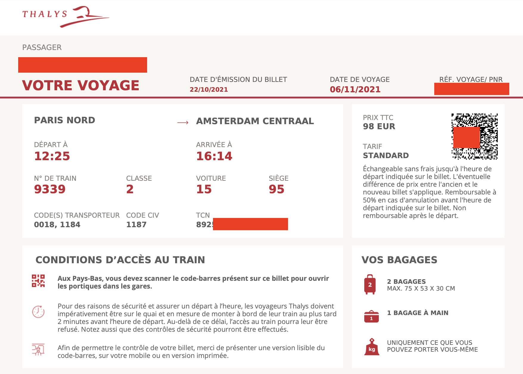 Hola Sir! Yo lo pagué 28 euros de Bru Midi a Ams central con tiempo en la web oficial. Lamentablemente lo perdí por pandemia en 2020. La única opción era cambio vía telefónica y la verdad no era el mejor medio ( costo de la llamada más diferencia de idioma) Thalys debería poder gestionar cambios o devoluciones vía web. Guardo la casi utópica esperanza de llevarlo en persona el día que finalmente vaya jeje para ver si se puede hacer algo.