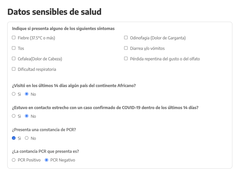 Y abajo está lo de si uno tiene constancia de PCR SI/NO