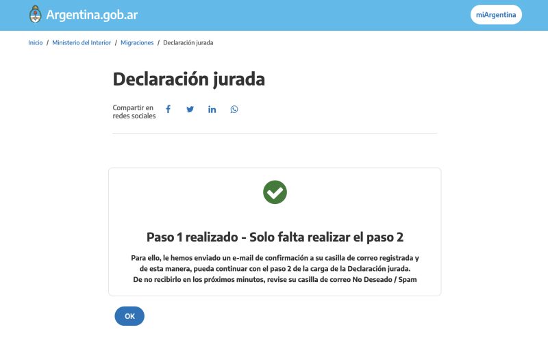 Pero quería mostrar que efectivamente cambiaron parte de la DDJJ que siempre se hace acá https://ddjj.migraciones.gob.ar/app/home.php, pero solo en proceso de carga, no en los requisitos.