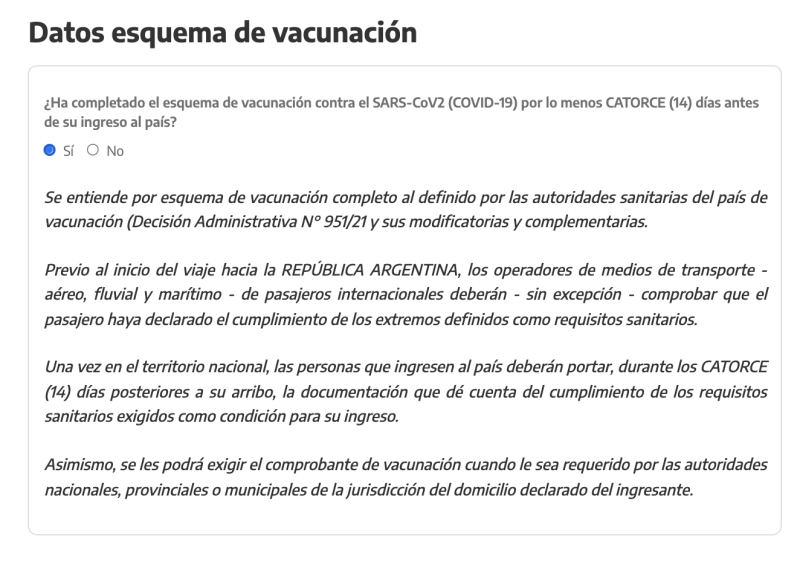 Hice toda la simulación y noté algunos cambios, por eso acá los muestro. Datos de vacunación, acá se habilita a lo del país de origen, lo que conté hace unos meses que si alguien vive en Europa donde en su momento a los recuperados de covid con una dosis los consideraban totalmente vacunados, acá lo confirma.