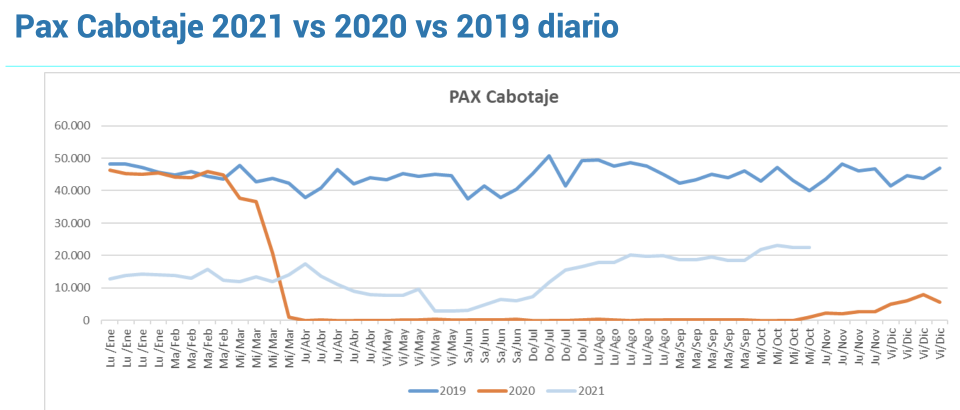 EN OCTUBRE AA2000 tuvo un 46% menos de pasajeros en cabotaje con relación a octubre 2019.