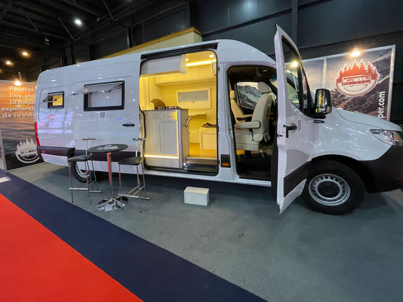 No recordaba de las otras dos FIT que fui, ver algo similar a lo que se suele ver en las IPW, que son las ferias de turismo de Estados Unidos, donde emprendedores muestran sus desarrollos para el turismo. Por eso me sorprendí con esta CAMPER argentina, hecha sobre una Sprinter