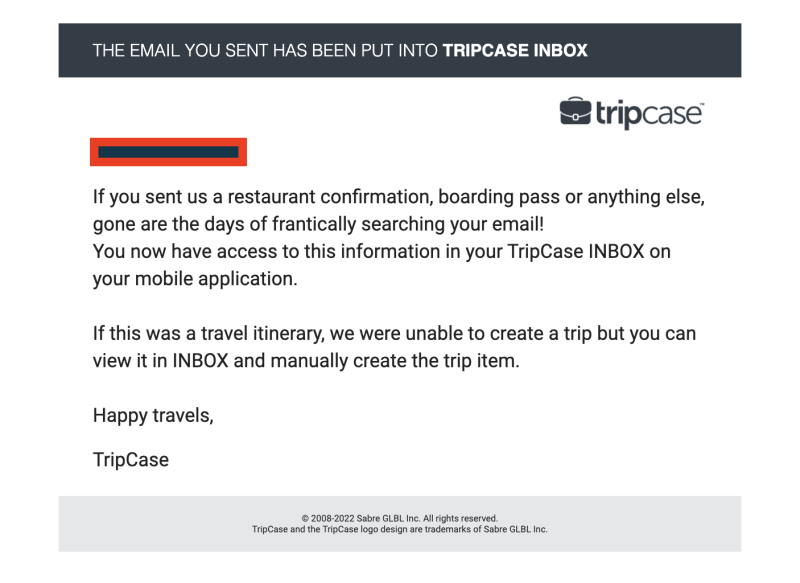 Please be aware the TripCase app will be sunsetting. Starting on April 1, 2025 you will no longer be able to access and use the app. Sabre will delete all TripCase-related trip and traveler data as part of the decommissioning process. You are free to choose an alternate itinerary management app.