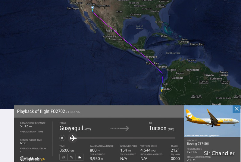 Este avión que terminó de volar ayer para la empresa, partió rumbo a un almacenaje de aviones en Estados Unidos.