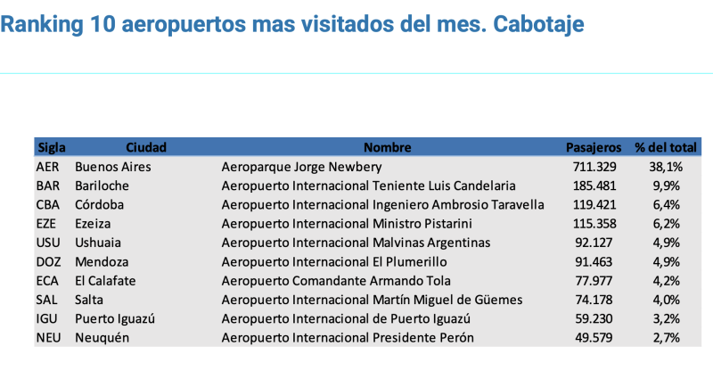 Pre pandemia se puede ver en esta publicación de mayo 2019 que era AEP COR MDZ BRC el ranking y que Córdoba tenía más del doble que Bariloche en un abril o mayo, pero que en julio 2018 pese a ser muy fuerte para Bariloche, aun no lograba superar a Córdoba