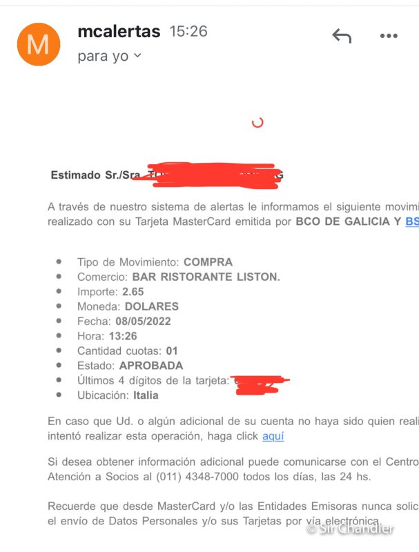 - Llegan muy rápido los avisos de Mastercard al mail