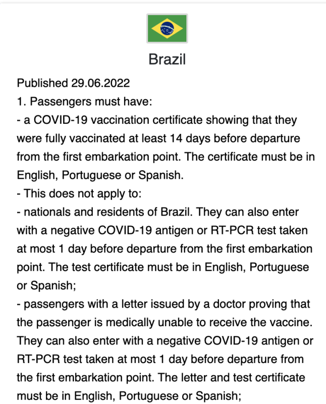 Muchos me consultaron ahora porque viajé a Brasil que fue lo que se pidió. Y mostré la foto del cartón de las vacunas en Ezeiza y listo. Pero ellos siguen con las vacunas, no importa cuales. No hay formulario