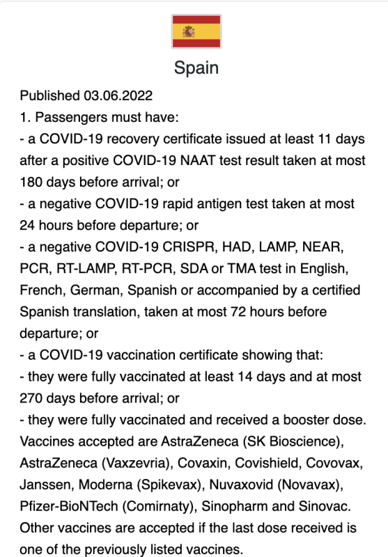 España acepta a vacunados o recuperados o testeados… pero sigue con su formulario de ingreso que genera un QR. Como siempre esto se chequea en el aeropuerto de origen. Figura lo mismo desde el 3 de junio… ¿Cambiará pronto?