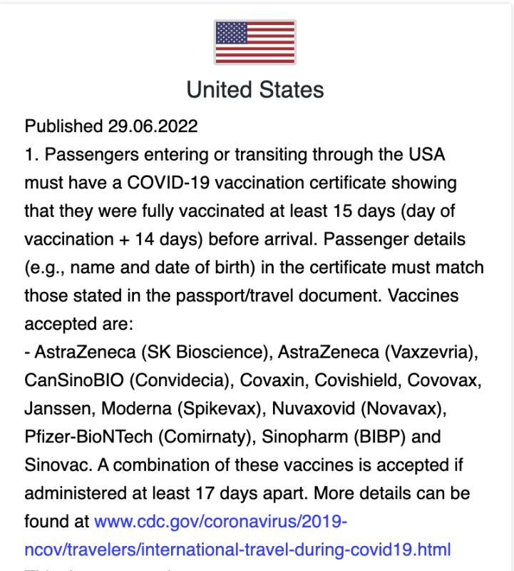 Hola sir,quería saber si siguen pidiendo las vacunas aprobadas por la oms para ingresar a usa?