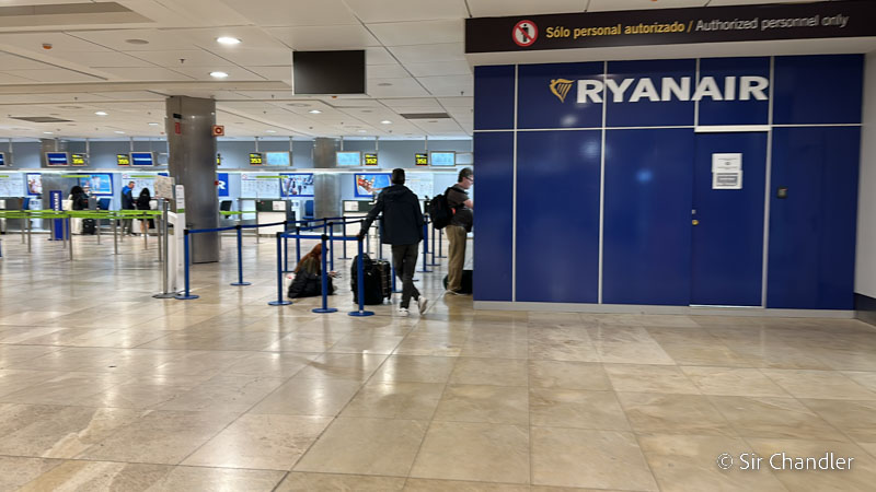 En la T1 se ve claro el sector de Ryanair para ir a despachar el equipaje. En mi caso tenía una valija de mano, pero fui a preguntar (para el video) si tenía que hacer algo más.