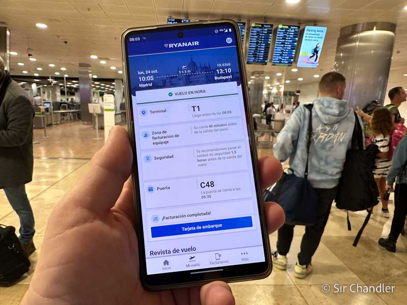 El vuelo salía temprano desde la T1 de Madrid. Devolví el Fiat 500 que fue parte de otro video donde busqué el auto más económico de alquilar. Ese video está acá.