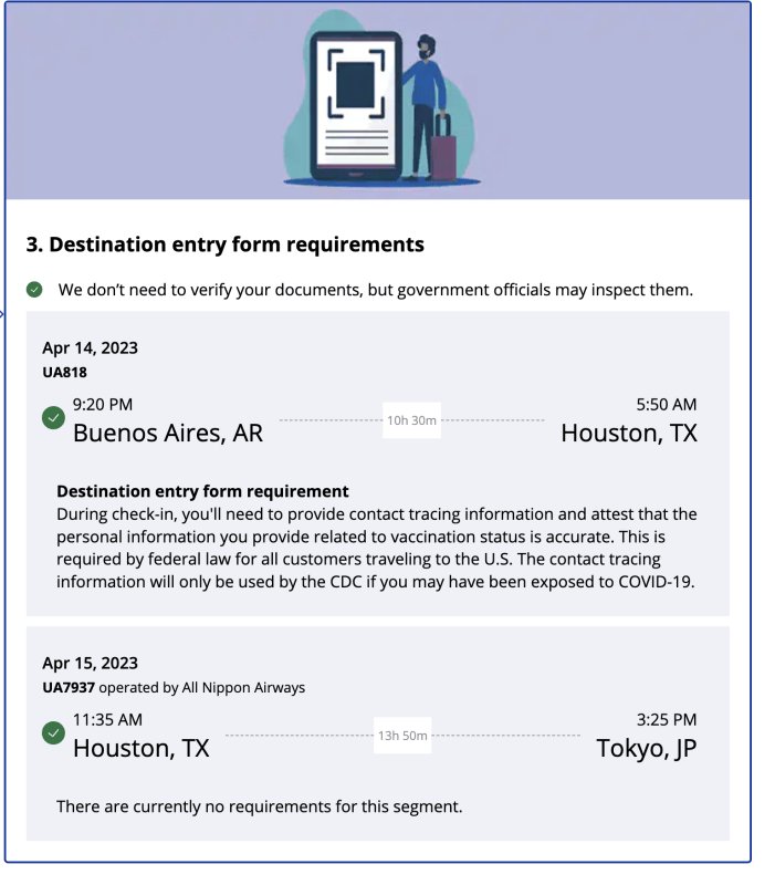 Primero esta captura de la web de UNITED donde tuve que presentar previamente las vacunas y hacer el formulario, que es una pavada… porque simplemente se presiona un botón. Lo aclaro porque muchos cuestionaron que USA siga pidiendo vacunas simplemente porque a esta altura en Ezeiza (o donde sea) se olvidan de pedirlo… pero es algo aleatorio. Aun es exigencia de USA.