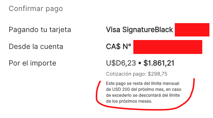 Pusieron varios límites (que no te informan) para pagar USDs… Primero: no te deja pagar mas de USD40… Genial!! dije… Hago varios pagos de USD40!! (tenia que pagar unos USD450) Nop!! No te deja «repetir operaciones» Siii !! Como leyeron!!! No te deja cargar 2 pagos del mismo importe!!! Asi que tuve que empezar: USD40.. USD39.. USD38… Así hasta que pude pagar todo el saldo de la tarjeta… UNA LOCURA!!!!