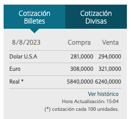 Esto lo hice hace un mes… y cambió el dólar. No se cobró nada extra