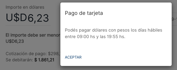 Y ahí se ven las opciones ahora… ¿Pagás pesos o pagás dólares?