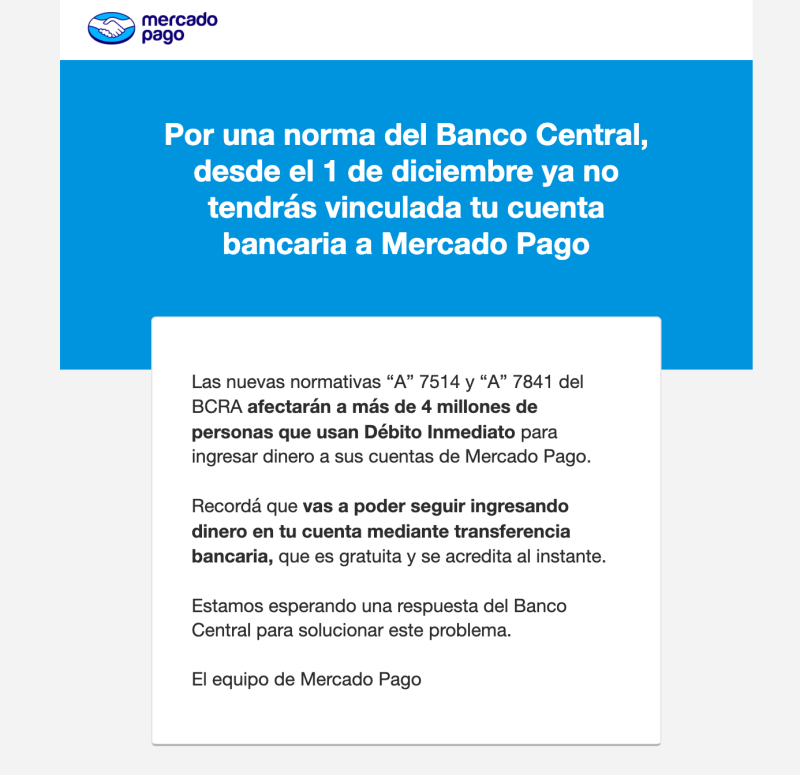 Resumen: los de mercadopago pretenden que se haga todo como ellos quieren, el BCRA cambia el DEBIN por transferencias pull que son mas seguras (y se usan en el resto de los países) y lloran, establecen interoperabilidad QR para las tarjetas y ellos son los ÚNICOS que lloran y la incumplen porque les corta el monopolio.