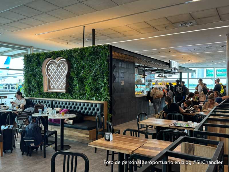 Finalmente abrió un TOSTADO, que entiendo es franquicia utilizada por los operadores gastronómicos que tiene Ezeiza, similares a los de Aeroparque.