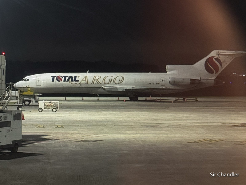 Total Cargo tiene 3 unidades del 727-200F, y creo que solo restan unas 10 o 20 en operación en todo el mundo. Vuelan de Guarulhos a Vitória, en el este de Brasil, y a Curitiba, Florianópolis y Porto Alegre.