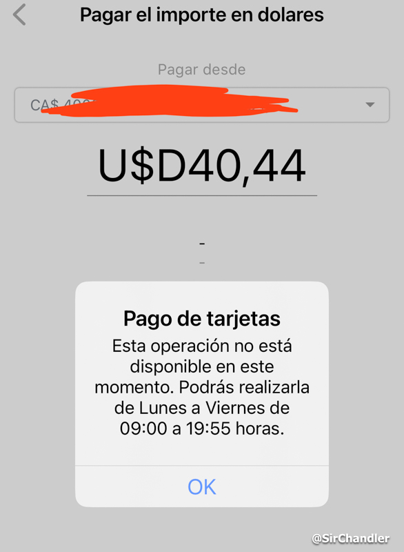 Banco Santander, realice un pago temprano con cotizacion a 473, horas mas tardes un saldo pendiente en dolares que tenia habia aumentdo porque me tomo el pago de todos los dolares del dia a 500 independientemente de que al momento de pago decia 473, segun el banco fue error de sistema porque la cotizacion ya era de 500 . hacen lo que quieren….