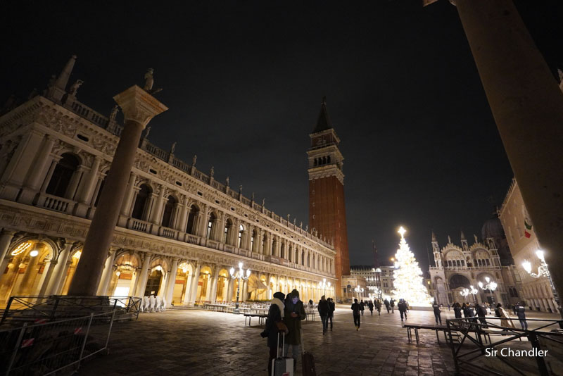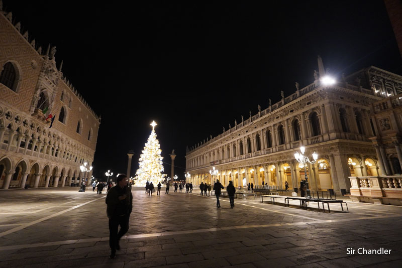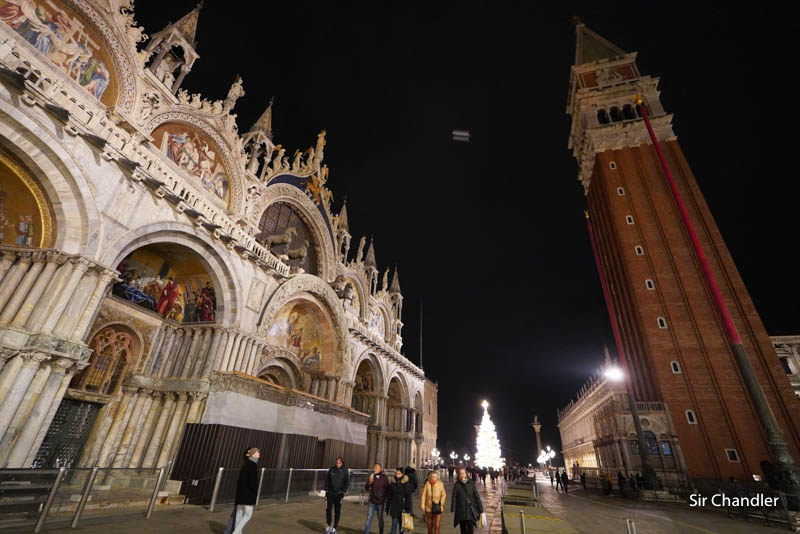 Siempre vemos fotos de Venecia atestada de gente, que no es lo que pasa claramente en una noche fría de diciembre. Esta es la Basílica de San Marcos que de día se compra una entrada para poder entrar.