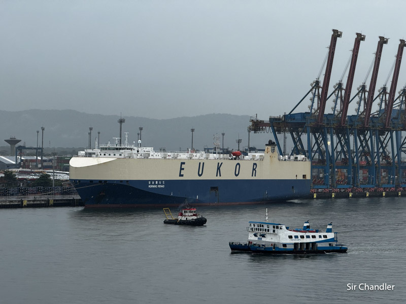 Este es un barco que traslada autos nuevos… nunca había visto uno en vivo. Llevan miles de autos