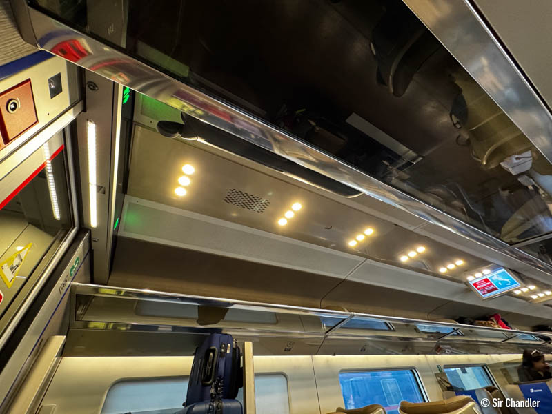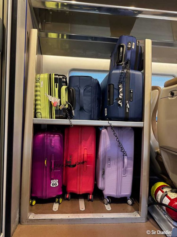 En estos se pueden poner las valijas. Algo que quería mostrar era como unos pasajeros asiáticos habían unido sus valijas con cables de seguridad. Es una posibilidad… con tantas paradas simplemente hay que estar atento. De esa manera seguro viajaban más tranquilos