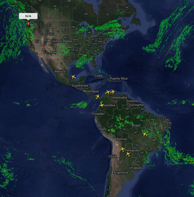 Arriba en el mapa se puede ver un N/A que es uno de Alaska en Seattle, sede de Boeing.