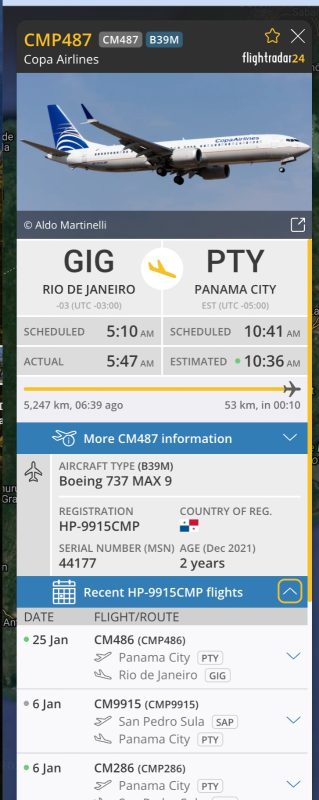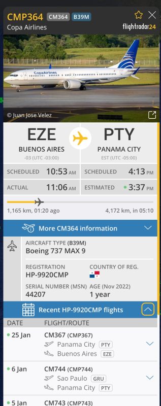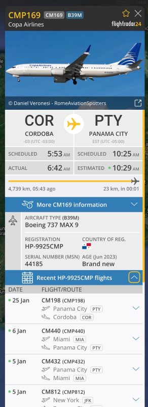 Si uno busca en Flightrdar24 los vuelos hecho con Boeing 737 MAX 9 se puede ver que hay varios de Panamá para abajo en estos momentos volando.