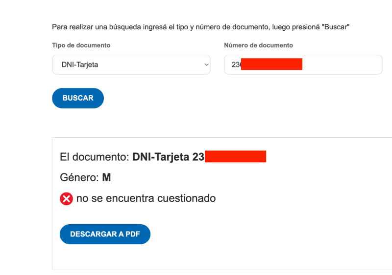 Documentos «cuestionados» es el término y acá es donde se chequea https://docuest.aaip.gob.ar/