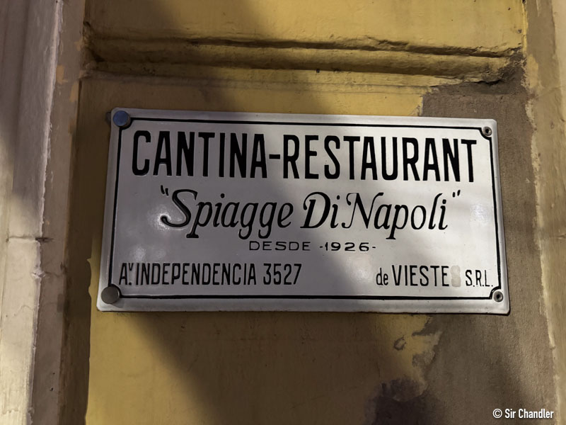 Vamos a meter un post gastronómico… de un lugar que visité varias veces, pero que en noviembre pasado en una noche que me quedé en Almagro documenté con mis hijas. SPIAGGE DI NAPOLI, en Independencia 3527 y que existe desde 1926… o sea 98 años! así lo aclara la chapa del lugar