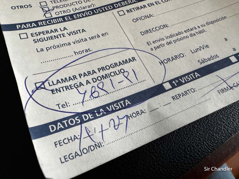 Entonces el viernes 19 nuevo intento de entrega, donde no tocaron el timbre pero si dejaron papelito con estos detalles