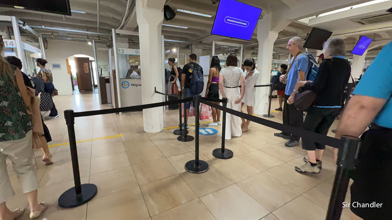Pasé por un escaner de seguridad en el primer piso y luego migraciones, que se hace una sola, es la Argentina. Al llegar a Colonia se entra directo. Lo mismo pasa al volver, solo Uruguay hace el trámite de ese lado. Un lector al volver me dijo que esto que era habitual PRE PANDEMIA, se normalizó hace algunas semanas recién. Que mientras tanto había que hacer de los dos países. Ya no, solo uno por tramo